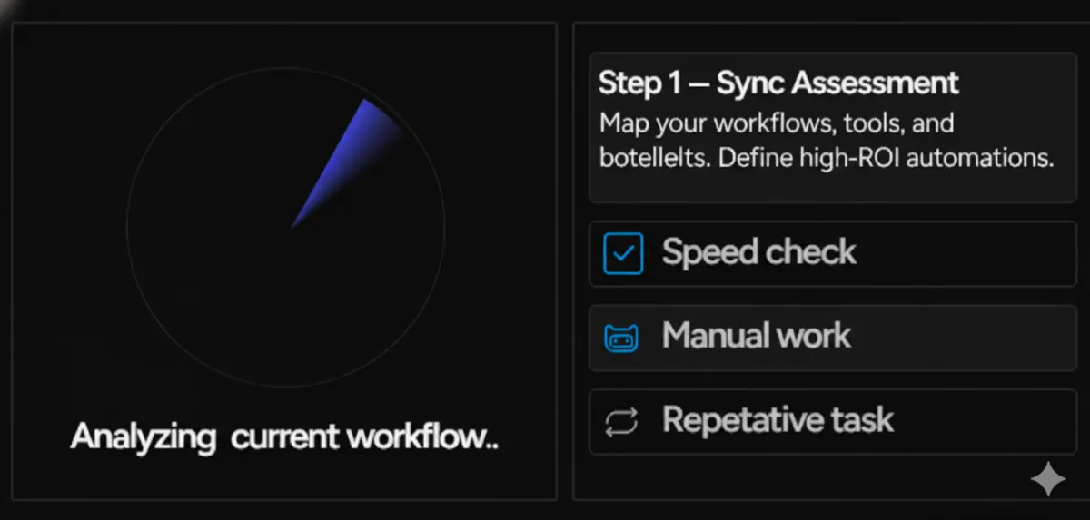 Map your workflows, tools, and bottlenecks. Define high-ROI automations.